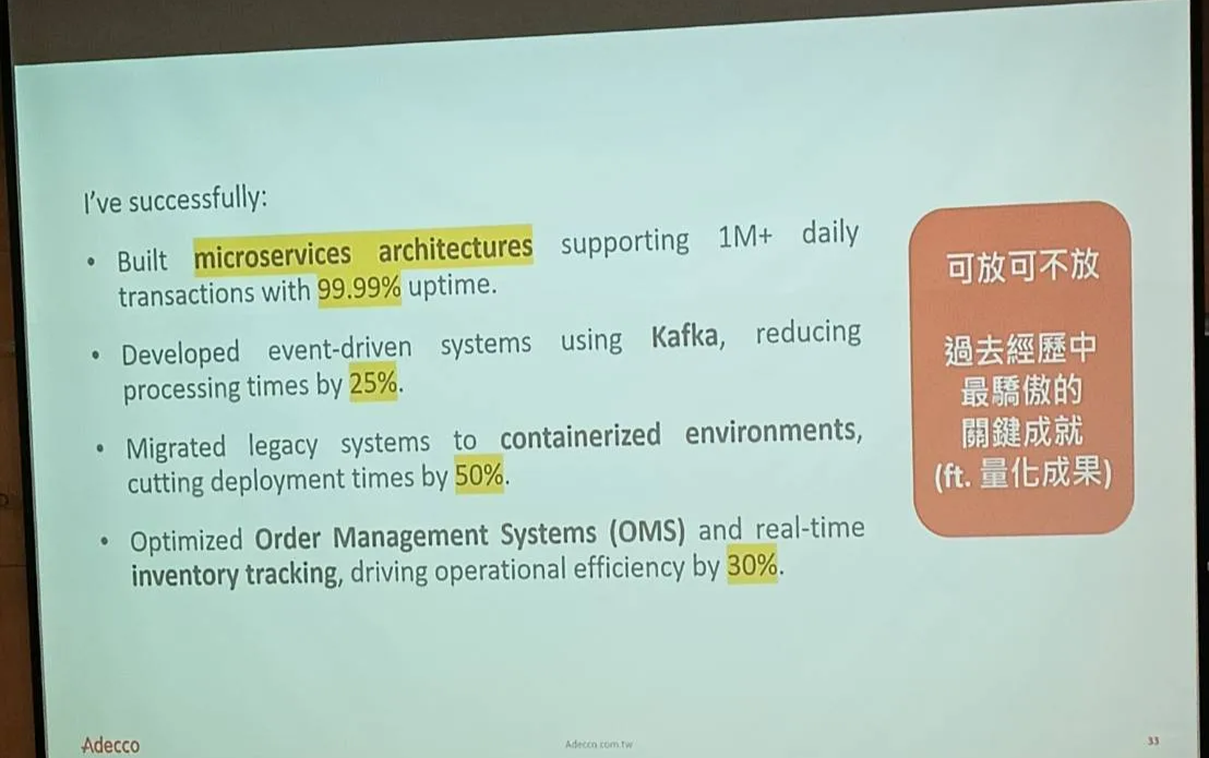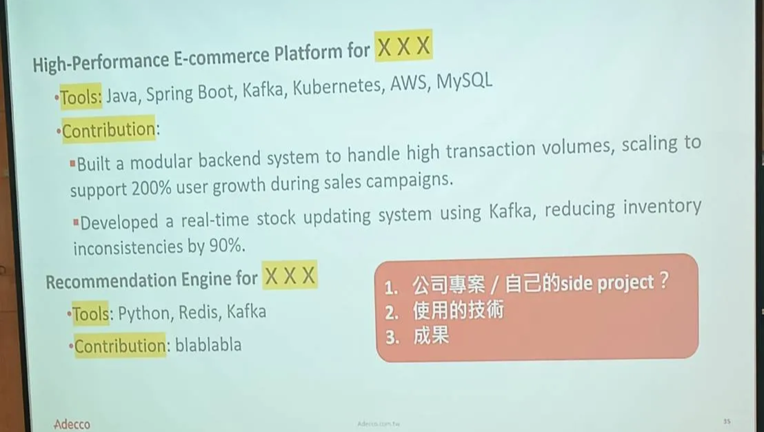- 其他關鍵字(領域、你開發什麼樣的系統等等)